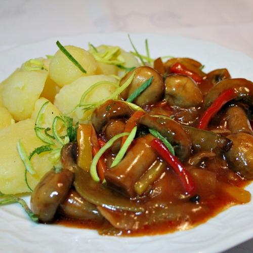 Bezmäsitú verzia soté z čerstvých šampiňónov ako minútku. Aj bezmäsité obedy môžu byť veľmi chutné, rýchle, jednoduché a pritom môžu pekne vyzerať.