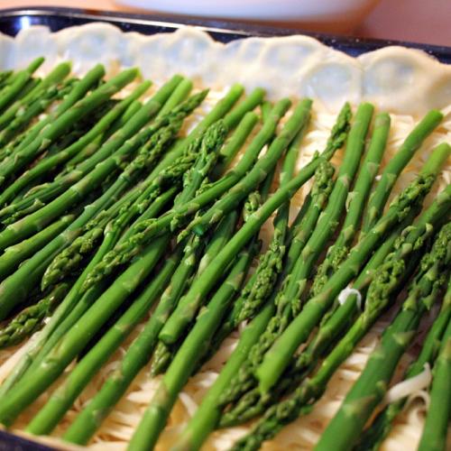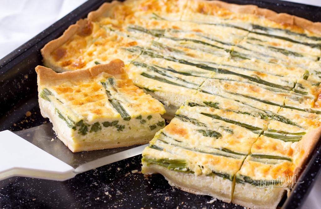 Tento slaný koláč s čerstvou mladou zelenou špargľou je veľmi chutný, šťavnatý a vhodný nielen ako chuťovka, či predjedlo, ale aj ako hlavný chod, napríklad s čerstvým zeleninovým šalátom.