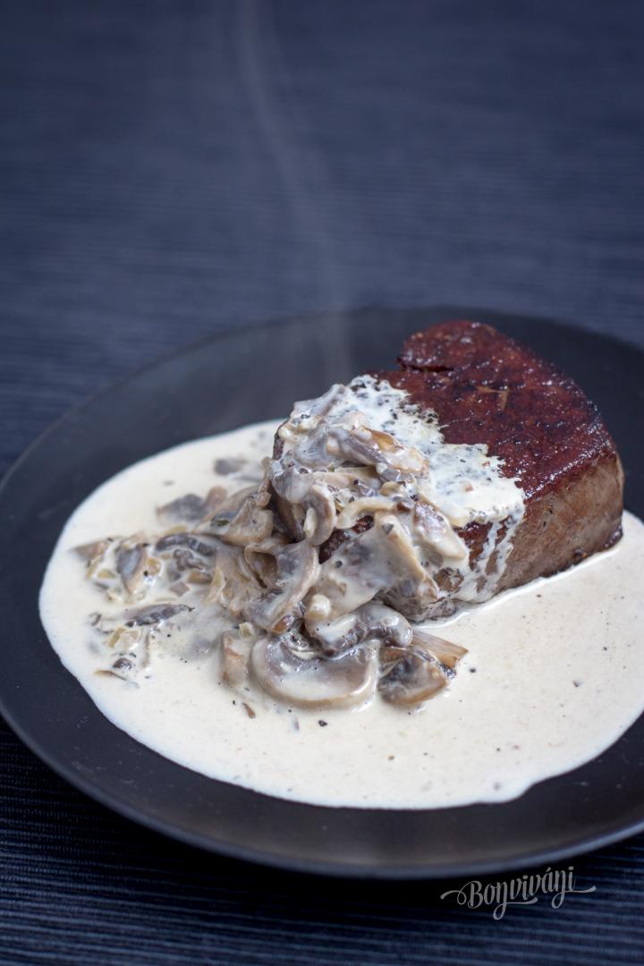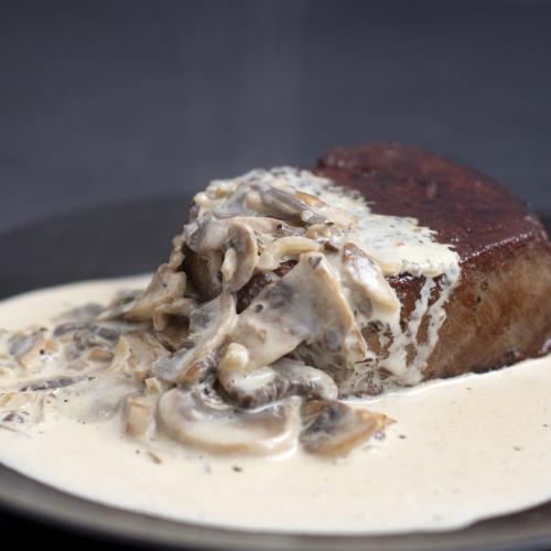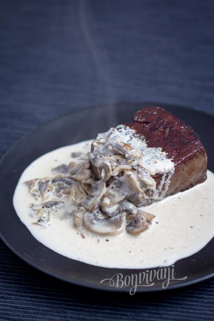 Poriadny biftek si robím, keď potrebujem nabrať energiu. Bezpečne to funguje :) Je dobré investovať do mäsa, pretože tak sa steak skoro vždy podarí a nebude tvrdý ako podrážka. No a samozrejme, servírovať ho s nejakou luxusnou omáčkou. Táto koňakovo-hubová omáčka je jemná a zároveň chuťovo intenzívna. Pôžitok bude dokonalý!