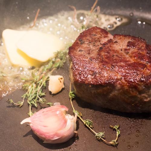 Steaky orestujeme z každej strany, aby sa zatiahli. Do panvice pridáme strúčik cesnaku, ktorý nemusíme šúpať, stačí nožom trochu rozdrtiť. Pridáme tiež tymián. Steaky restujeme a obraciame každú minútu. Keď sa steaky zatiahli, pridáme maslo a restujeme ďalej. Lyžicou naberáme maslo z panvice a polievame ním povrch steaku počas restovania. Keď sú steaky hotové (čas je individuálny, podľa toho, ako ho má kto rád prepečený), odložíme ich bokom a zakryjeme alobalom, aby nevychladli. Ak si neveríte, či sa vám steak dobre prepiekol, pred podávaním ho prekrojte a skontrolujte. Ak je príliš surový, môžete ho nakrájať na tenké plátky, vrátiť do omáčky a prehriať ho pár minút. Takto ho môžete podávať na chrumkavej bagetke zasypaný syrom. Bude to božská lahôdka.