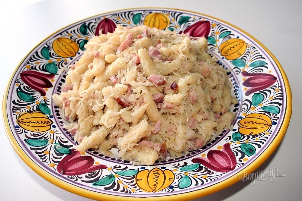 Na masti osmažíme nasekanú cibuľu a pridáme nakrájané údené mäso, alebo slaninu. Restujeme do zlatava. Kvasenú kapustu nakrájame na menšie kúsky a pridáme v údenému mäsu. Všetko spolu opekáme za stáleho miešania, kým sa neodparí prebytočná tekutina. Pridáme obvarené strapačky, premiešame a ihneď podávame.
