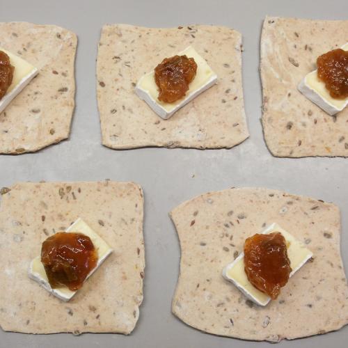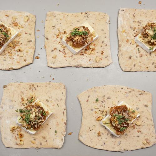 Malé, rýchle a delikátne pohostenie. V chrumkavom cestíčku sa pri pečení roztopí syr brie, ktorý sa tak spojí s figovým džemom a vlaškými orechami.