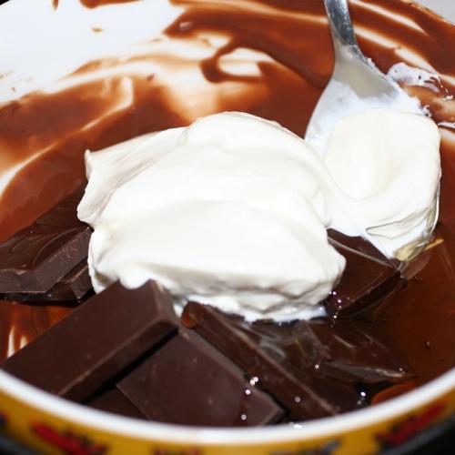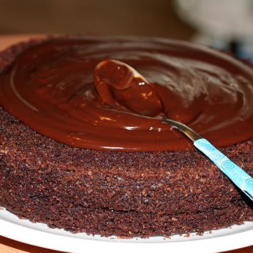 Na vychladnutú tortu preložíme lyžicou hustejšie polevu a krúživými pohybmi ho rozotrieme ku krajom. Len tak leda-bolo, netreba robiť žiadne uhladené okraje. Ak dačo stečie, vôbec nevadí. Táto poleva nestvrdne, časť sa vpije do cesta, čo je super, pretože korpus nasiakne aj chuť čokolády. Vôbec netreba čakať, tortu môžete ihneď krájať. Výborná je s čerstvo vyšľahanou šľahačkou.
