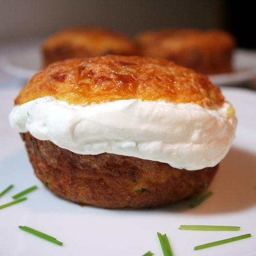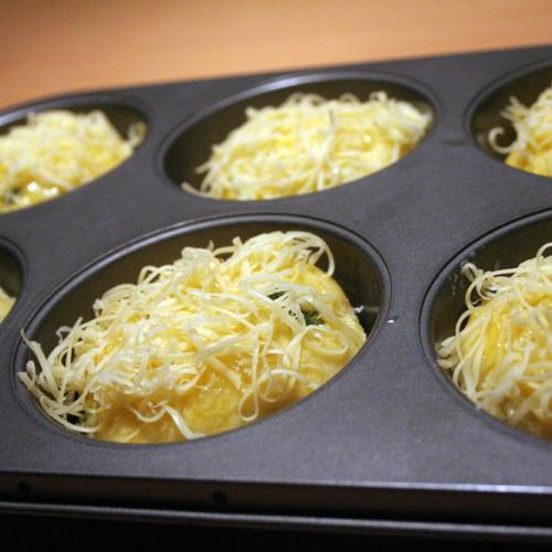 Zemiaky uvaríme v šupkách, necháme vychladnúť, očistíme a na jemno nastrúhame. Pridáme dva bielky a jeden žĺtok. Druhý si odložíme na potretie. K zemiakom pridáme olej, nasekanú vňaťku, mlieko. Osolíme, prisypeme múku zmiešanú s kypriacim práškom, nastrúhaný syr, z ktorého si tiež kúsok odložíme na posypanie. Ak máte radi, pridajte aj troška cesnaku, alebo rasce. Všetko spolu premiešamee. Cesto rozdelíme na 6 častí a mokrými rukami vytvarujeme žemličky. Môžete ich poukladať na plech vystlaný papierom na pečenie, ale lepší tvar docielite, ak ich vložíte do muffinovej formy. Do každej jamky dáme pár kvapiek oleja.