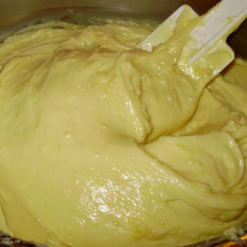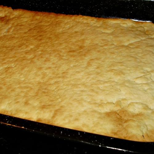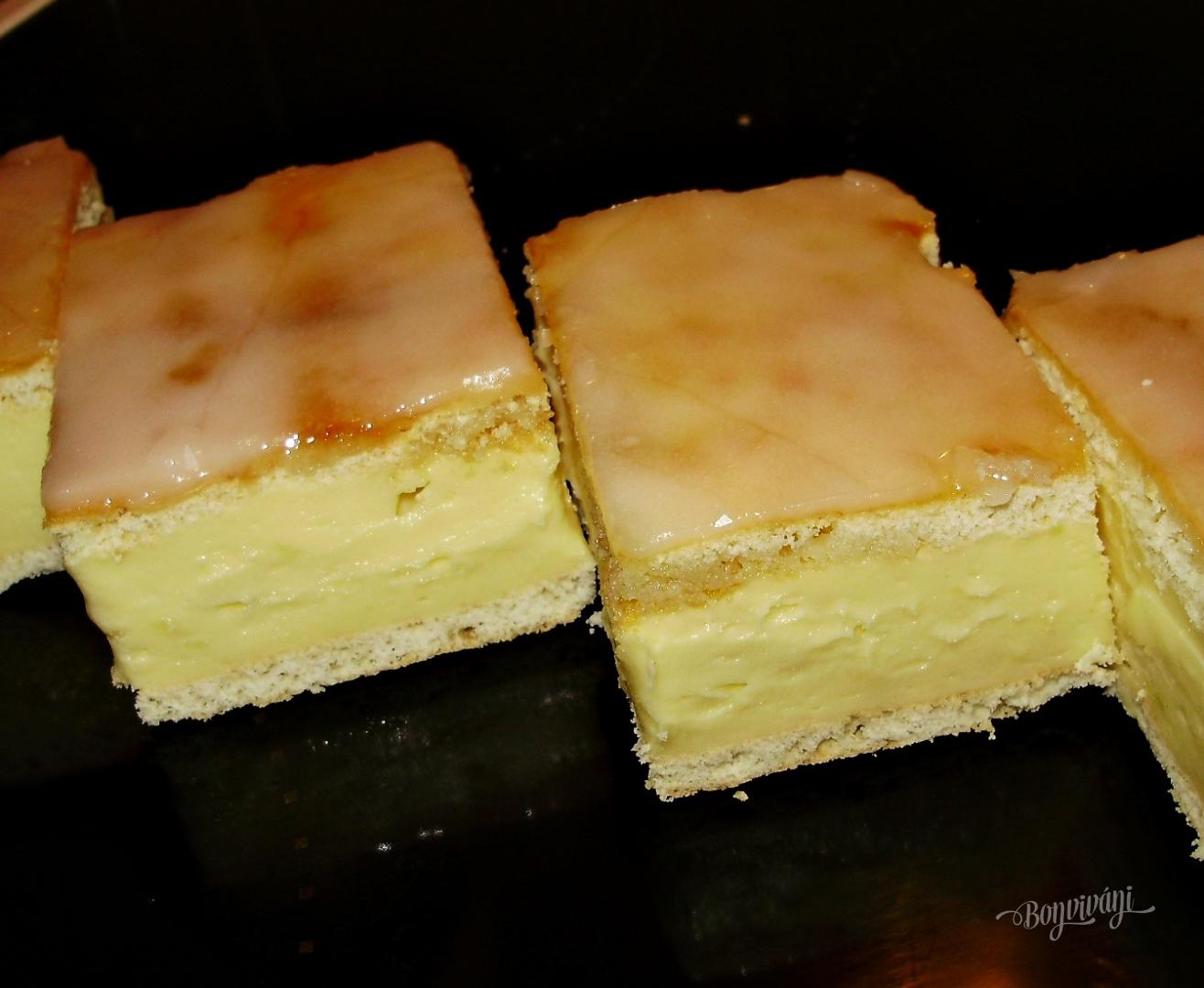 Do hlbokého plechu dáme jeden upečený plát cesta a potrieme ho vyšľahaným krémom. Priklopíme ho druhým plátom cesta. Ten jemne natrieme marhuľovým džemom a polejeme citrónovou polevou. Tú pripravíme tak, že vymiešame dve lyžice teplej vody s 30 deka práškového cukru a dvomi lyžicami citrónovej šťavy. Mieša sa to dosť dlho, aspoň desať minút, než sa poleva naleje na koláč.