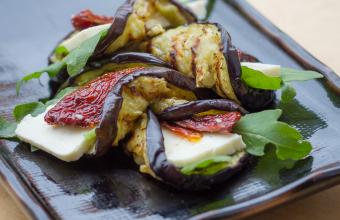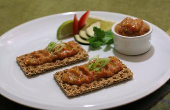 Nátierka z pečeného baklažánu, papriky a cesnaku, ochutená limetkou.
