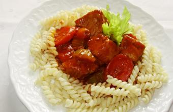 Ragú z bravčového mäsa s mrkvou a zelerom. Šťavnaté a jednoduché. Výborné spolu s cestovinami.