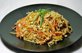 Recept pre inšpiráciu... Hrsť uvarených špagiet, trochu zeleniny a hlavne zdravé mungo klíčky.