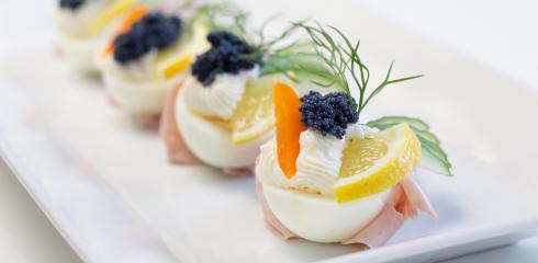 Alebo plnené šunkové kornútiky s mascarpone krémom, vajíčkom a kaviárom. Efektné predjedlo, ktoré sa podáva s nakrájanou…