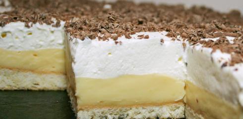 Bezé korpus, žĺtkový krém, čerstvá šľahačka a ľadové gaštany. To je tá správna kombinácia chutí na nedeľný dezert. Plech: 23x38