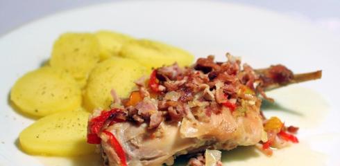 Stehná z domáceho králika upečené pod slaninou sú šťavnaté. A presne takto piekla králiky moja babka :)