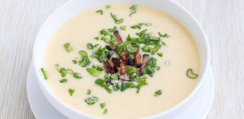Rýchla syrová polievka so slaninkou a jarnou cibuľkou. Polievka je krémová, jemná a má výraznú syrovú chuť. S krajcom chleba…