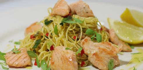 Opekané rezance s lososom